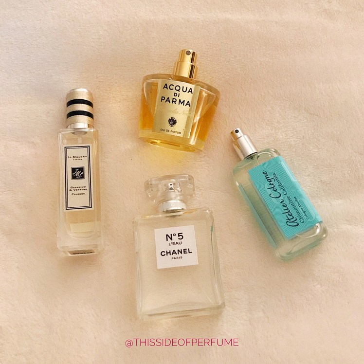 Hi, everyone! I’m back with my regular weekly round-up post. This week was a little different because it was a travel week, so I don’t have as many scents pictured as usual. I still managed to wear some goodies though!