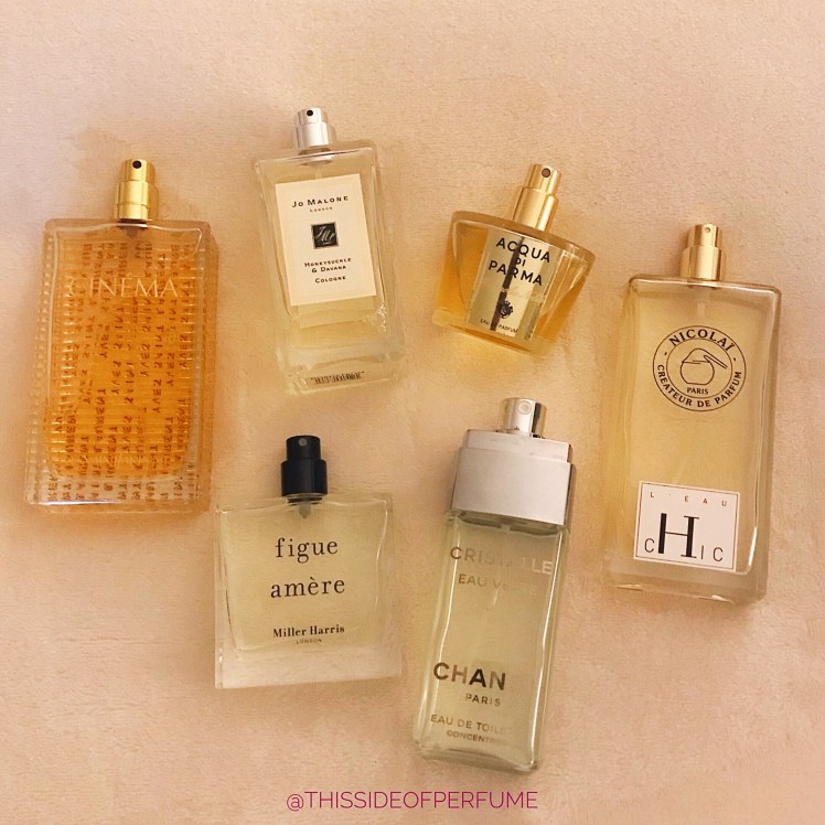Hi, everyone! We made it to another Sunday, so I’m back with my weekly scent round-up. The weather was very hot and humid this week. It got up to 90 degrees a couple of days, which is not my favorite for September weather! I definitely wore a few of my hot weather scents instead of my Fall scents this week.