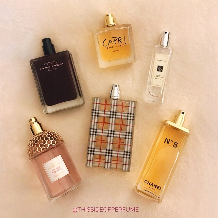 Hi, my dears! I am back and very happy to post this week’s scent round-up. It finally feels like proper Fall weather, which gave me the occasion to dig out my Burberry Brit. I can’t wait to wear other favorites like Tea for Two and Serge Lutens’ Rousse.