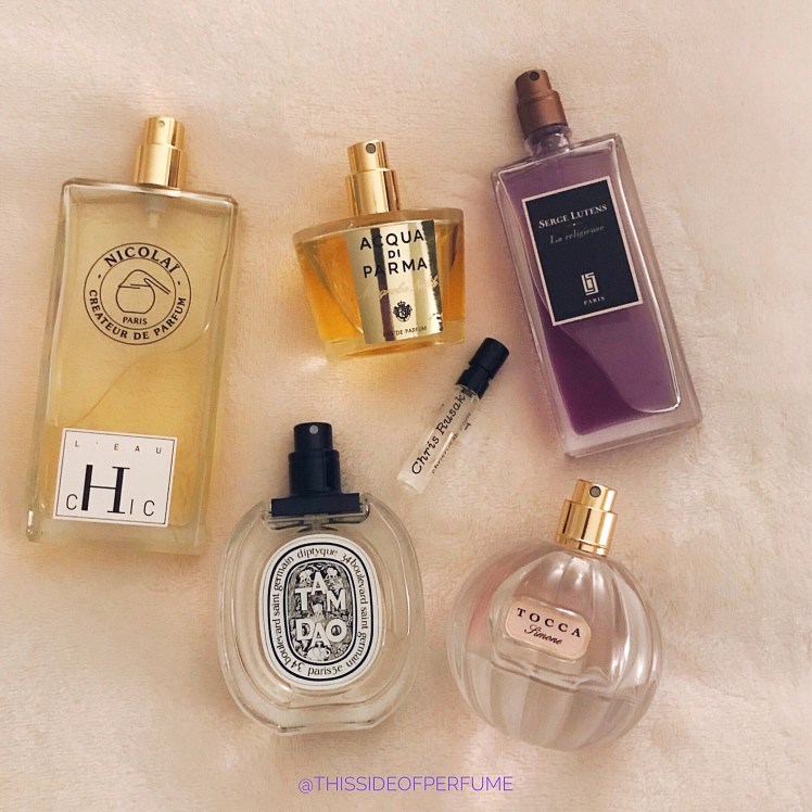 Hi, everyone! I hope you all had a great week. I was in New York for my birthday and I picked up a couple of fragrance-related gifts for myself! The travel means that I have a slightly abbreviated scent round-up here since I was sampling and wear-testing a couple of goodies.