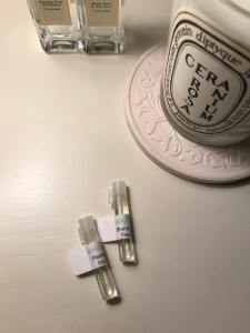 As soon as I apply this to the skin, it’s like a rush of notes just blooming in front of me. I definitely get a tangy coriander in the opening. This coriander is green and sharp. It bites at your nose and your attempts to sniff it. I also get a heady neroli. It takes several minutes for this composition really settle into my skin.
